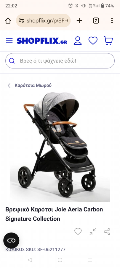 Πωλείται σε άριστη κατάσταση το καρότσι Joie Signature Aeria. https://youtu.be/kzTCXrsi5Bo?si=rsPw90AFWw3CHhrK Αγόρασμενο 1 χρόνο πριν. Είναι πολύ στιβαρό και υπέροχο στην οδήγηση και άνετο για το μωρό. 1. Έχει κατεύθυνση προς τις 2 μεριές. Να κοιτάει και προς τα έξω και την μανούλα. 2. Ρυθμιζόμενο ύψος καθίσματος. Το μωρό μπορεί να βλέπει από αρκετά ψηλά ή πιο χαμηλά. 3. Μπορεί να είναι τελείως ξαπλωμένο ή σε ορθή γωνία. 4. Το κάθισμα είναι ενισχυμένο με μαξιλάρια. 5. Η κουκούλα είναι τεράστια και αντηλιακη. Μαζί δίνεται και το αδιάβροχο (αχρησιμοποίητο) και οι ανταπτορες για αυγό (αχρησιμοποίητοι καθώς από την μέρα 0 το είχαν το μωρό τελείως ξαπλωμένο χωρίς να χρειάζονται το αυγό). Τιμή 250 ευρώ. Αν μένετε Καβάλα μπορείτε να το δείτε από κοντά.