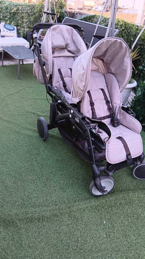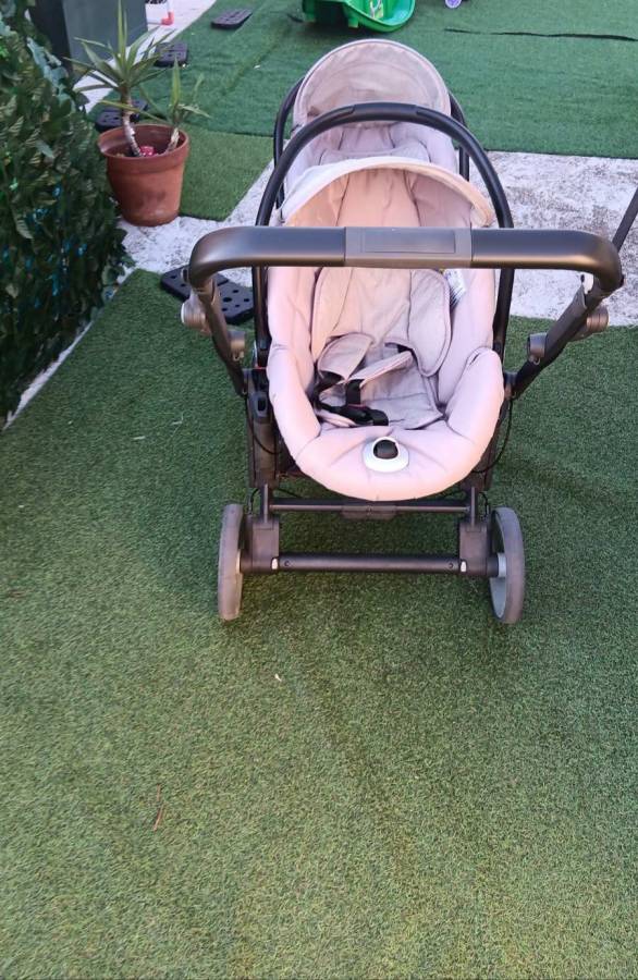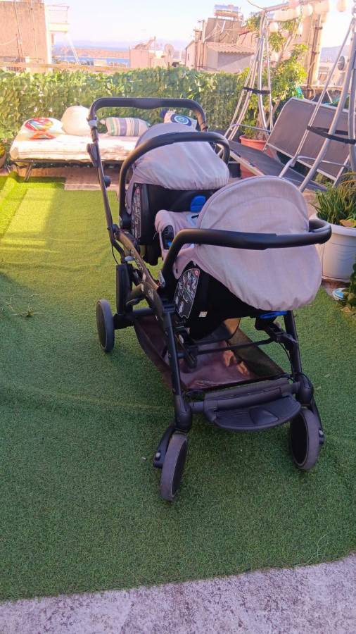 Καρότσι διδύμων CAM PULSAR ελάχιστα χρησιμοποιημένο λόγο καραντίνας.Μαζι καθίσματα αυτοκινήτου της CAM από 0 μηνων που μπορούν να προσαρμοστούν στον σκελετό του καροτσιου.Διαθετει σύστημα περιστροφής 360 μοιρες και σύστημα κεντρικού φρένου.Μαζι δίνονται: Τσάντα καροτσιου,2 ποδοσακοι και 2 αδιάβροχα καροτσιου αχρησιμοποίητα