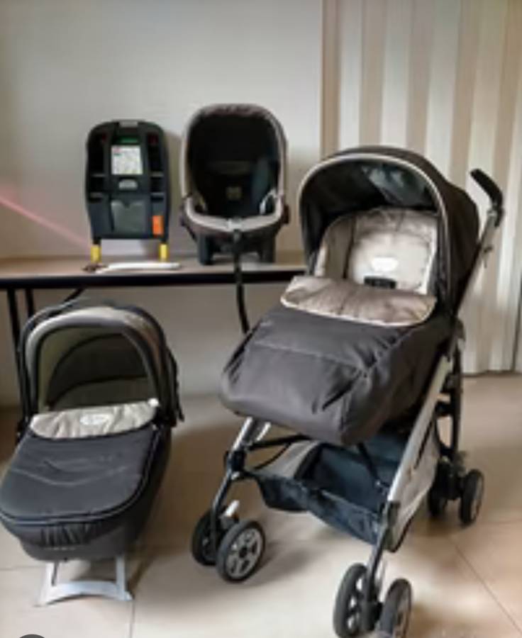 Συμπεριλαμβάνει σκελετό καροτσιού, κάθισμα καροτσιού, κάθισμα αυτοκινήτου με επιπλέον βάση Isofix, και port bebe. Δίνονται μαζί τσάντα αλλαξιερα, προστατευτικό βροχής και ποδοσακος. Κάθισμα αυτοκινήτου και port Bebe εφαρμόζουν στον σκελετό. Συνοδεύει το παιδί από 0 έως 3 ετών τουλάχιστον.